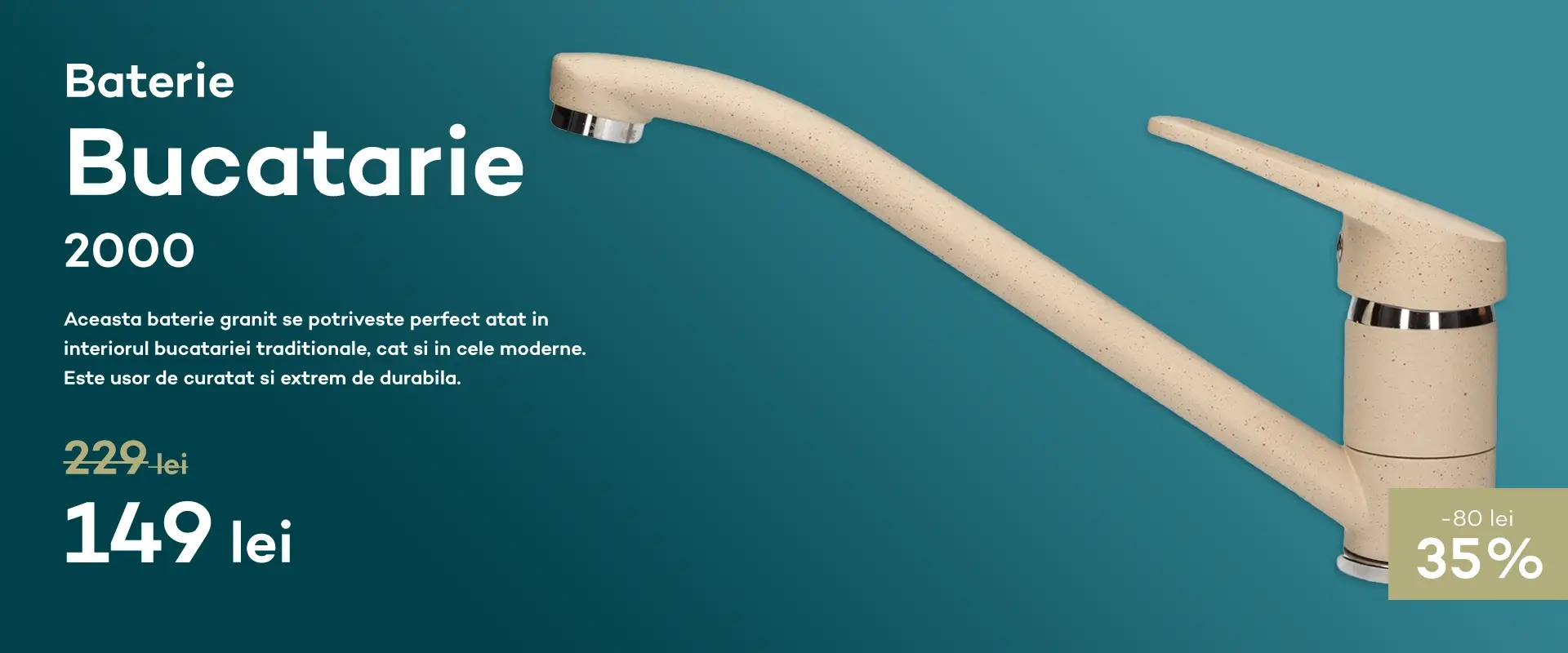 Opțiuni829 lei629 leiChiuveta bucatarie granit Fortuna cu baterie cadou