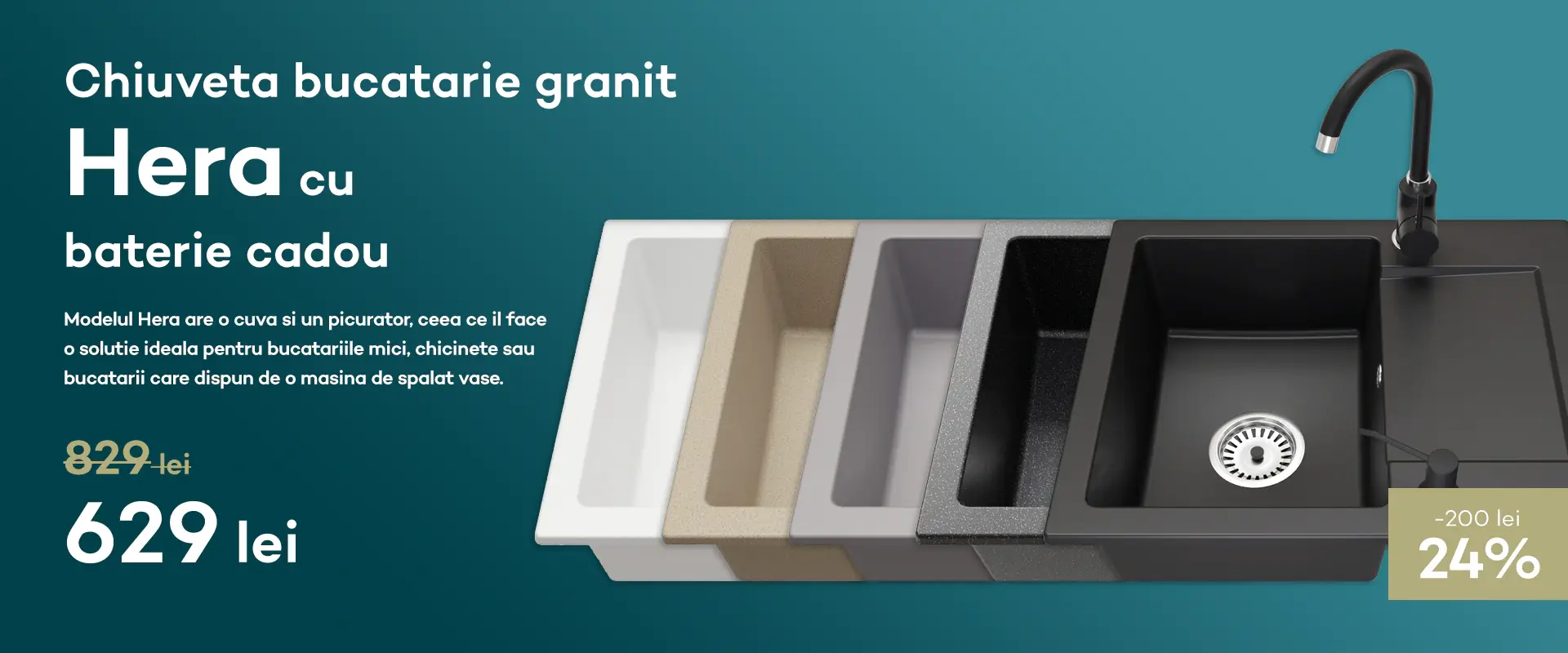 Opțiuni929 lei729 leiChiuveta bucatarie granit Hera cu baterie cadou